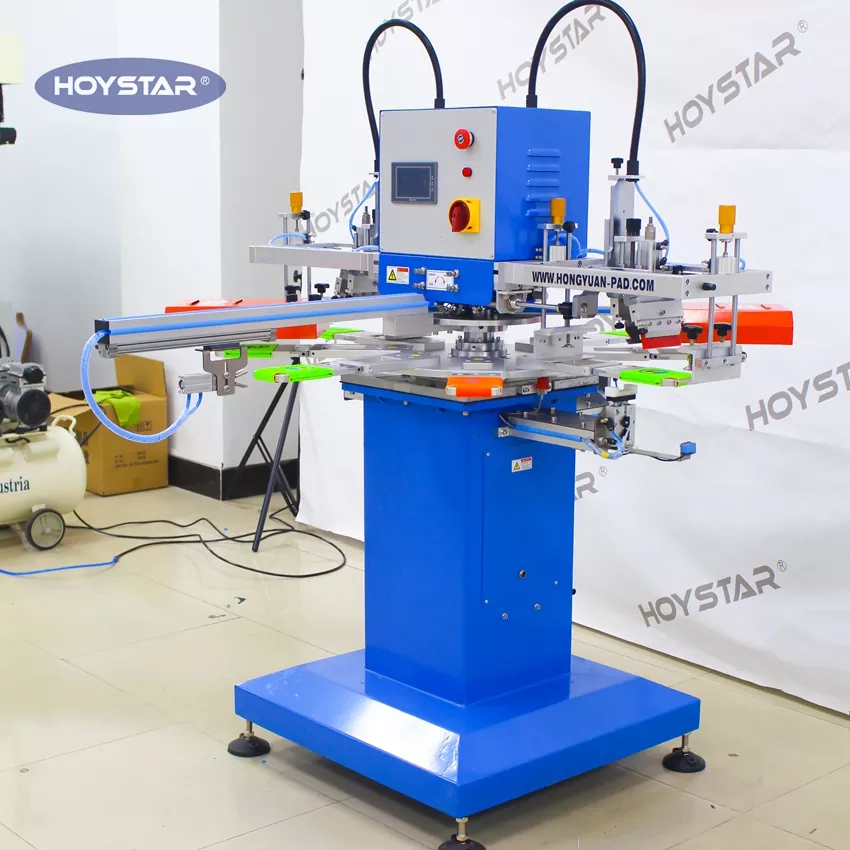 HOYSTAR は中国の信頼できるメーカーおよびサプライヤーです。この HOYSTAR 2 色自動缶クーラー クージー スクリーン印刷機は食品および包装業界に適しており、クージーおよび缶クーラーに特化したこの自動スクリーン印刷機は、両面印刷プロセス全体をシームレスに自動化します。セットから印刷、乾燥、180度回転、裏面印刷、最終排出まで