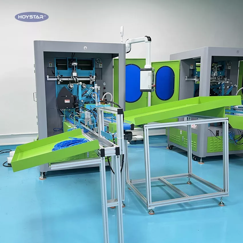 この HOYSTAR 全自動多色プラスチック カップ スクリーン印刷機は、カップ印刷シナリオの特定のニーズを満たすために、さまざまな種類のカップに印刷できるように専門的に設計されています。自動ローディング、自動印刷、自動アンロード、LED UV 硬化機能を備えた完全自動印刷モードにより、人件費を節約します。 PLCタッチスクリーン制御を装備し、安全でユーザーフレンドリーな操作を実現します。オペレーターはパラメータ設定、プロセス監視、機械調整を簡単に完了できます。さまざまな仕様のカップへの印刷に適しています。安定した印刷とフレキシブルなオペレーションで、お客様の量産ニーズにお応えします。