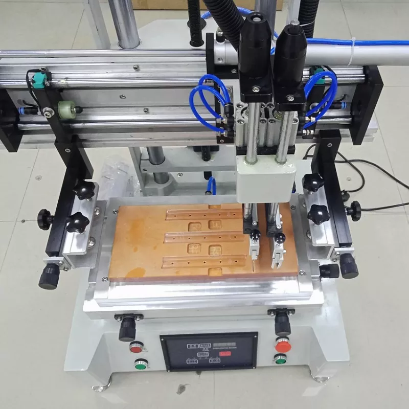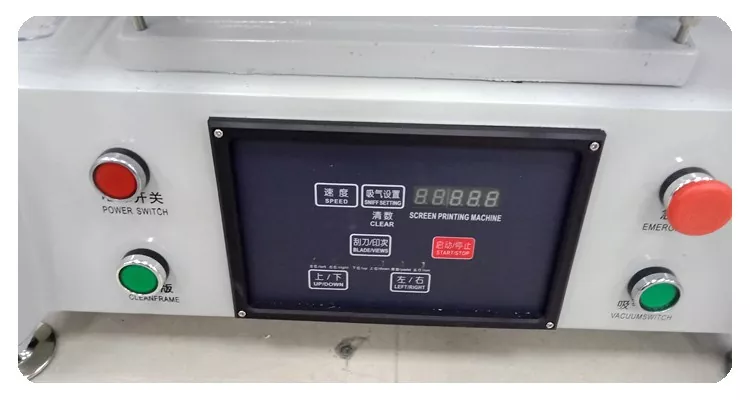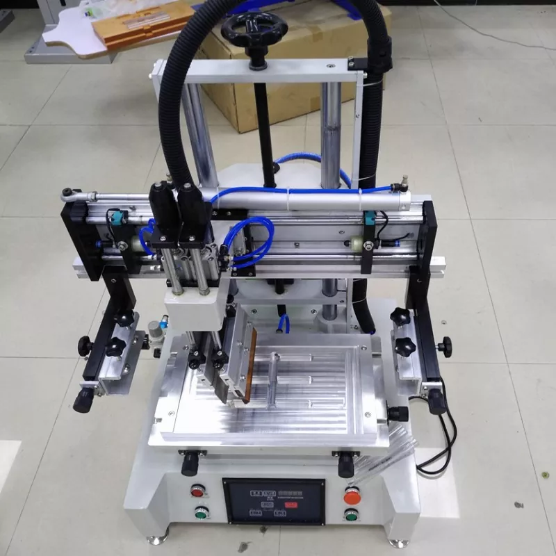印刷ワークステーション。スクリーンフレームを交換して、製品に異なるパターンやロゴを印刷できます。